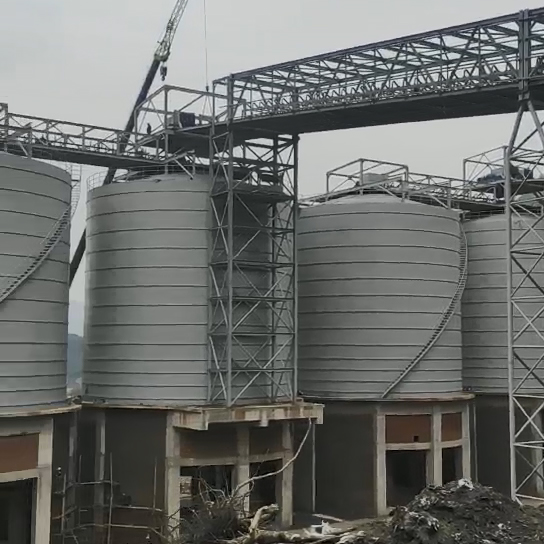 库体选用钢板搭接焊接而成,新式下料2000吨骨料屯昌钢板库包括环形根底、导料锥、库底板、下料口、出库廊道、卸料设备、库体、库顶、气化管。下大上小的圆台形方案。库顶是球缺形,位于2000吨骨料屯昌钢板库的顶部方位,可以选用网架方案,也可以选用桁架方案。